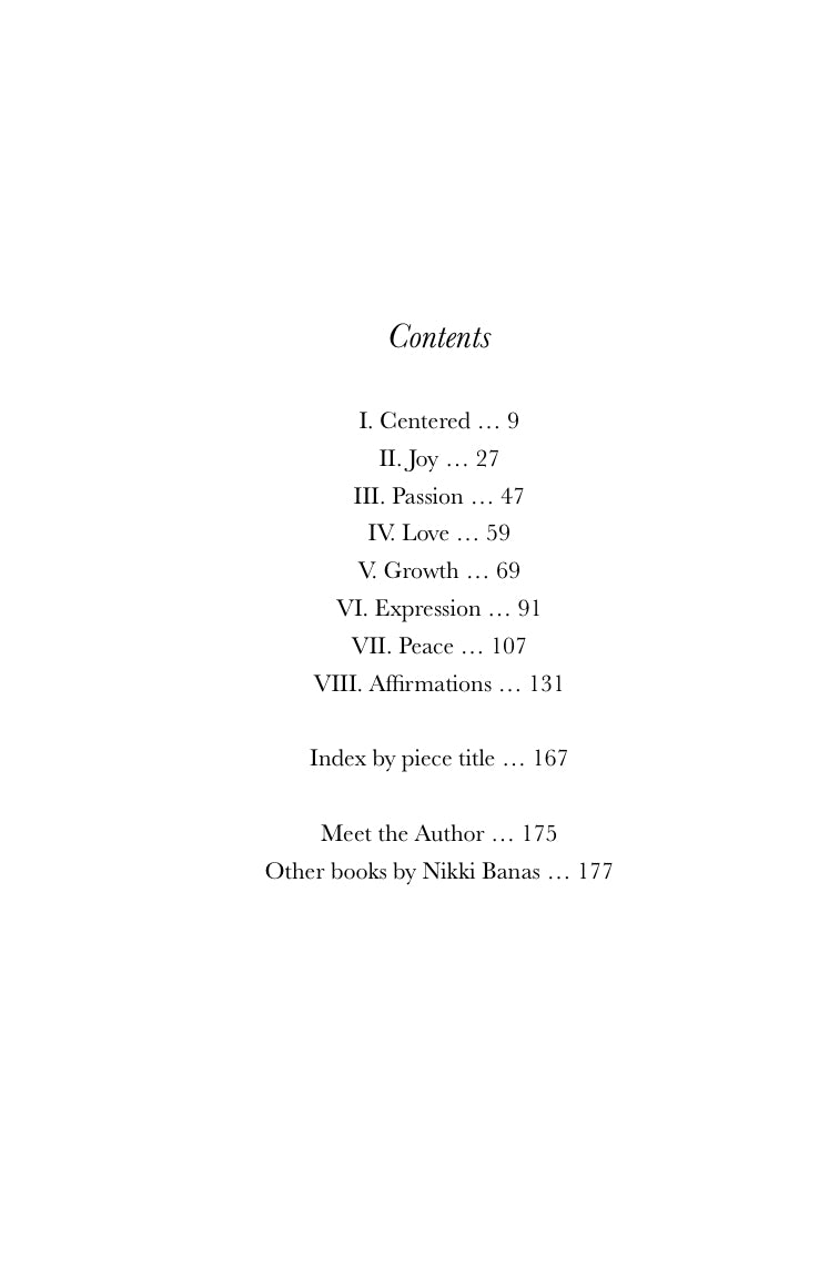 "May these words bring peace to the waves within your soul." From the celebrated author of Shine from Within comes a brand new collection of short letters, affirmations, and poems to welcome peace into your heart. In Soul Waves, Nikki offers a stunning collection of writings exploring topics of self worth, expression, growth, love, and others, as well as a chapter of powerful, transformative affirmations to bring joy and peace into your daily life. Comprised of over 150 beautifully written letters, no matter what waves you are facing in your life, there is a piece that will uplift your spirit and bring peace to the waters within your heart.
